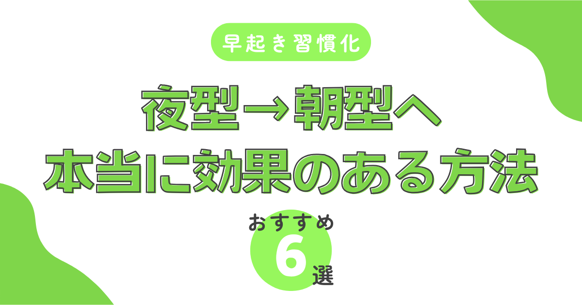 夜型だった私が朝型になるために行った施策で効果が高かった方法6個をご紹介します。