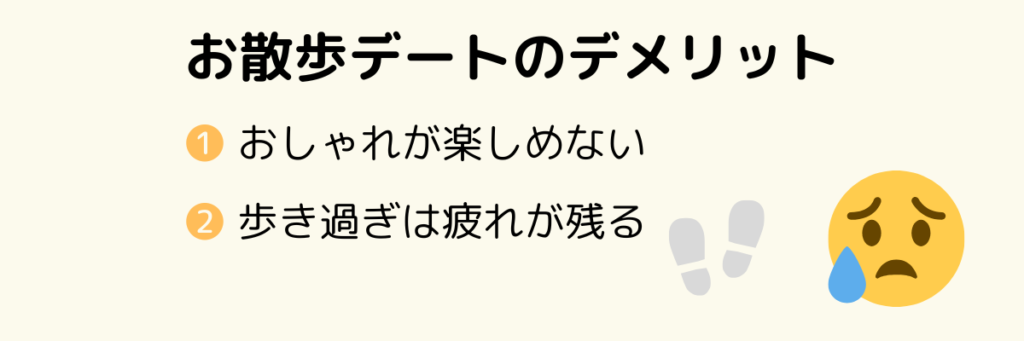 ここまでメリットについて紹介してきましたが、実はお散歩デートにはデメリットもあります。