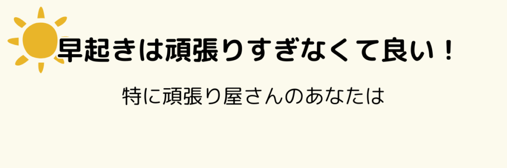 頑張らずに早起きを続けるコツは、頑張りすぎないことです。