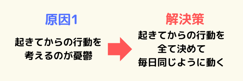 ここまで細かく行動を決めておいてあげると、少し寝ぼけてても動き始めることができます!