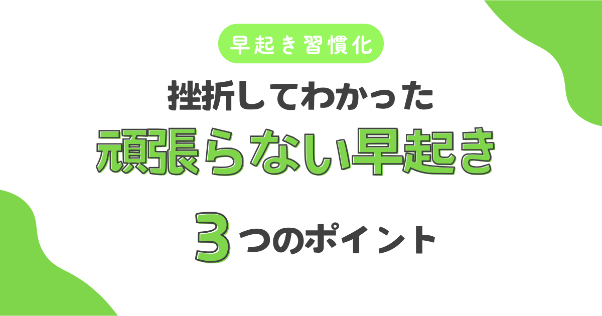 頑張らずに早起きを続けるコツは、頑張りすぎないことです。