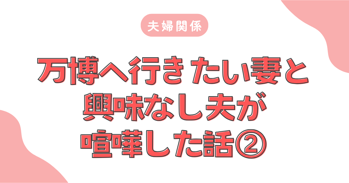 そんなわけで、「万博へは一人で2回行こうと思う!夫は付いてく来なくていいよ」と伝えたら、夫が泣き出してしまった…。